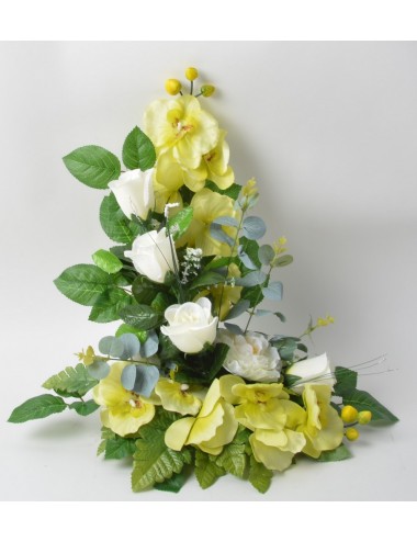 SOCLE GRANIT BOUTON RENONCULE ORCHIDEE