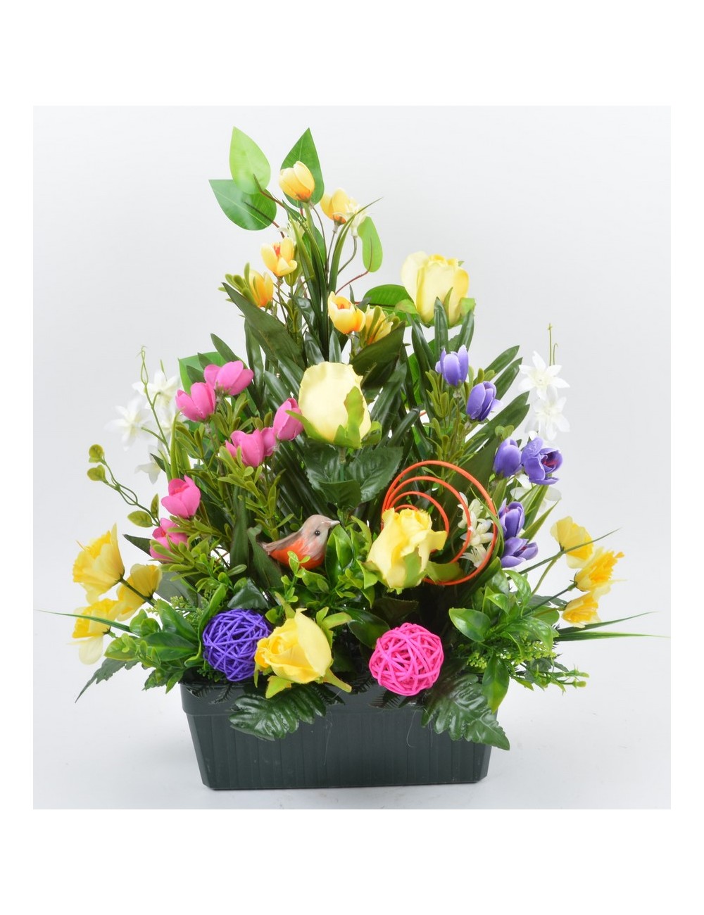 JARDINIERE 25 CM CROCUS BOUTON OISEAU YELLOW