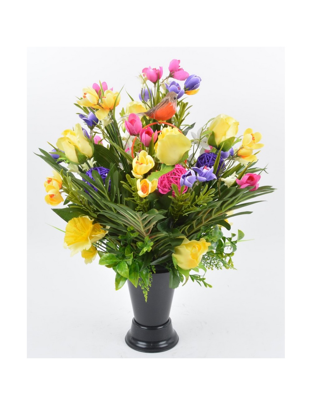 BOUQUET DE VASE CROCUS BOUTON OISEAU