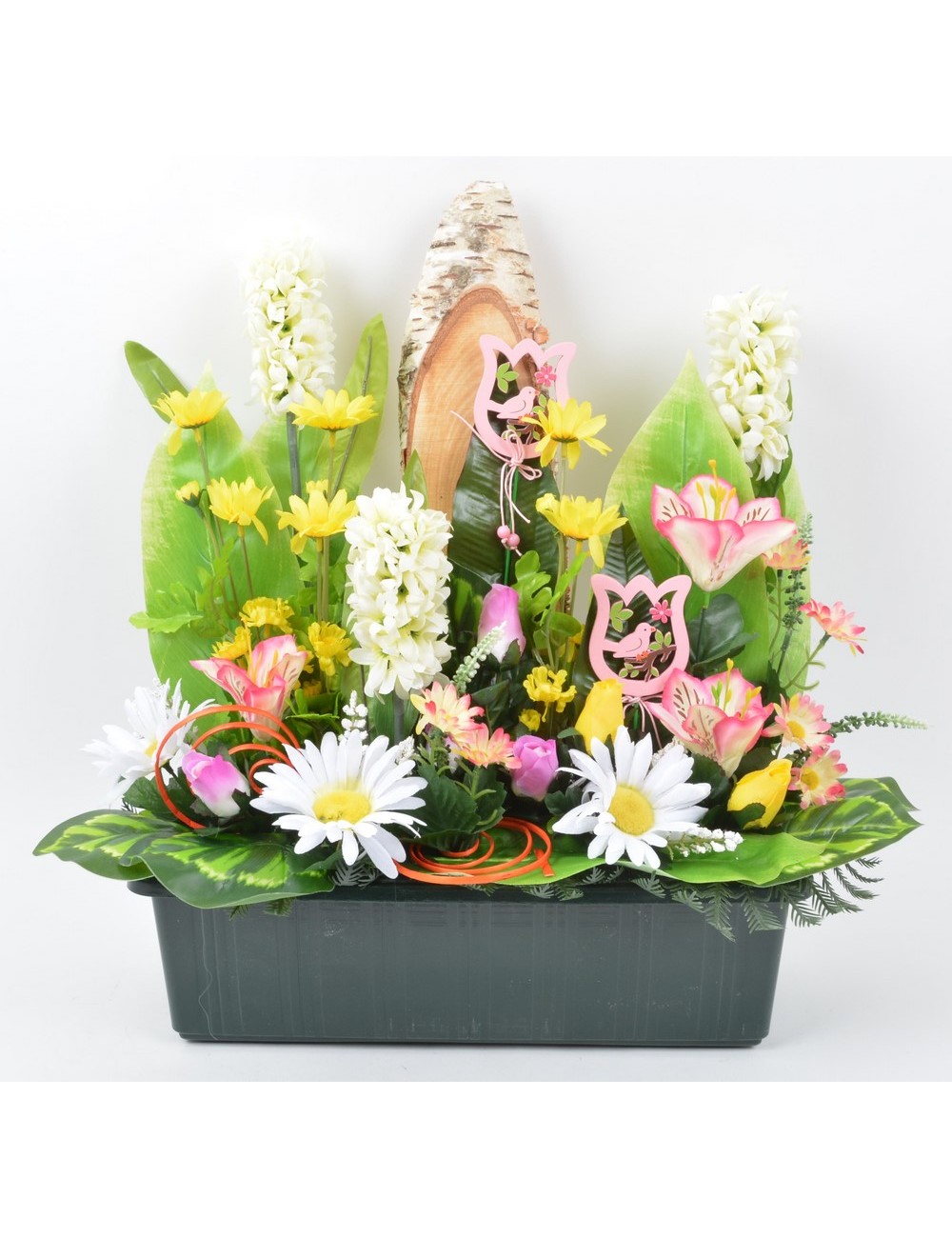 JARDINIERE 40 CM JACINTHE ASTER MARGUERITE WHITE PINK