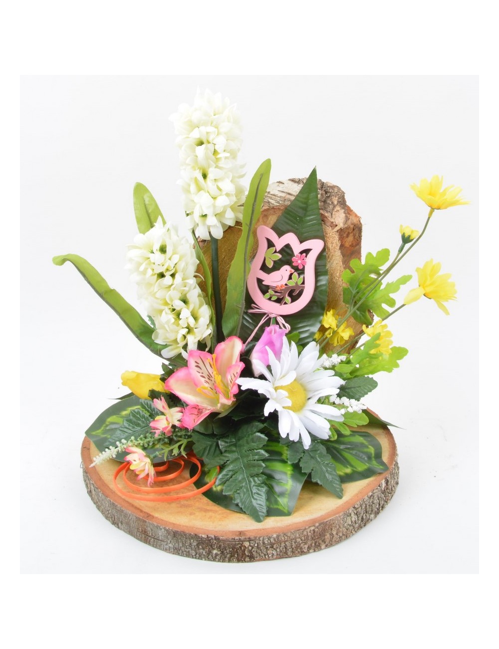 PLAQUETTE BOIS JACINTHE ASTER MARGUERITE WHITE PINK