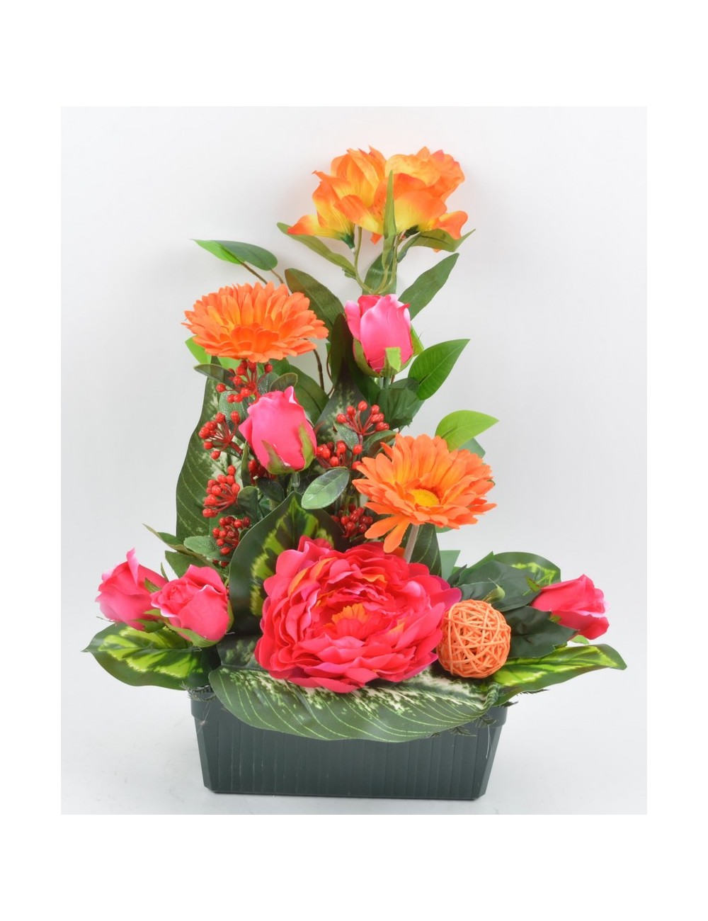JARDINIERE 25 CM ALSTROMERIA PIVOINE BAIE GERBERA ORANGE BEAUTY