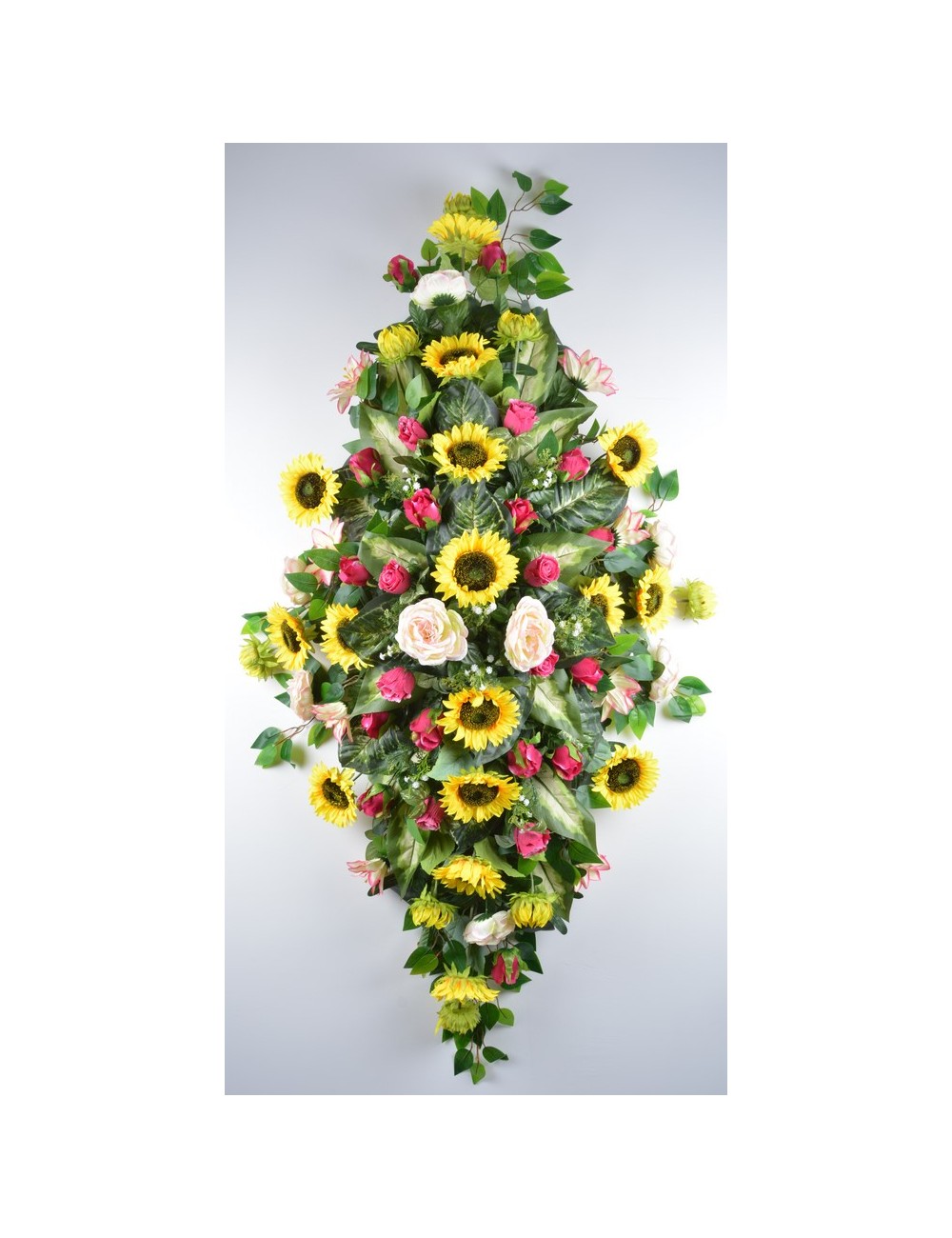 DESSUS DE CERCUEIL TOURNESOL RENONCULE ROSE CLEMATITE