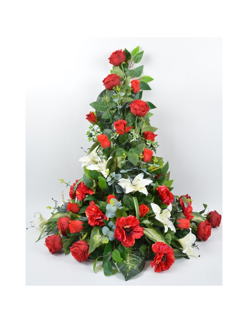 DEVANT DE TOMBE GM ROSE ANEMONE LYS BOUTON RED WHITE