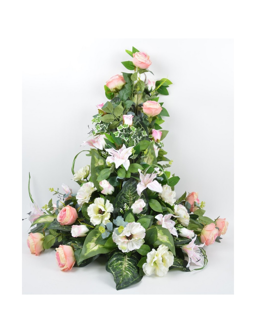DEVANT DE TOMBE GM ROSE ANEMONE LYS BOUTON WHITE LIGHT PINK