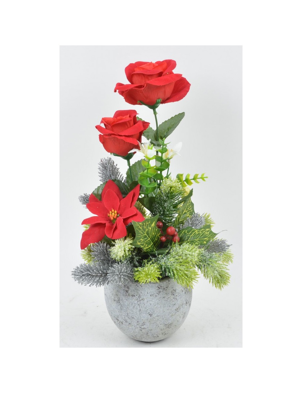 POT CIMENT MARBRE 12 CM SAPIN POINCETIA PERE NOEL RED