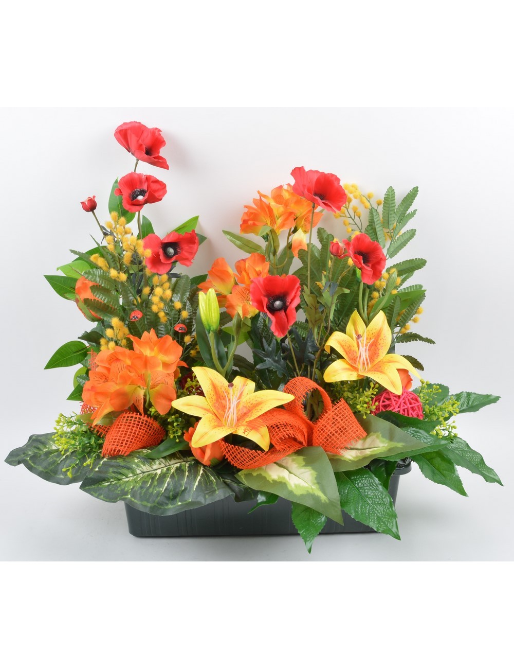 JARDINIERE 40 CM LYS MIMOSA PAVOT ALSTROMERIA
