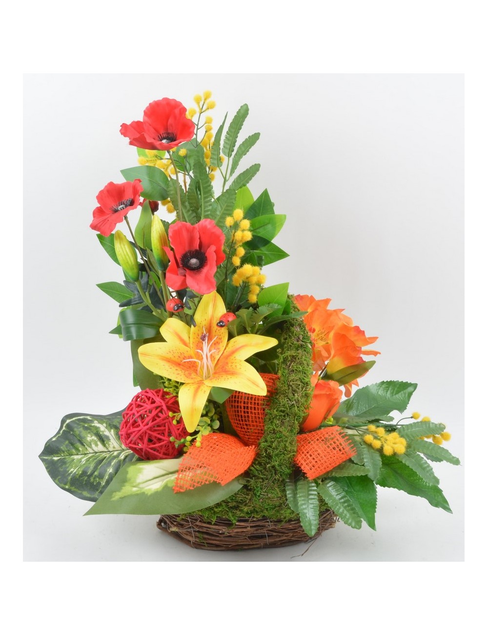PANIER GM LYS MIMOSA PAVOT ALSTROMERIA