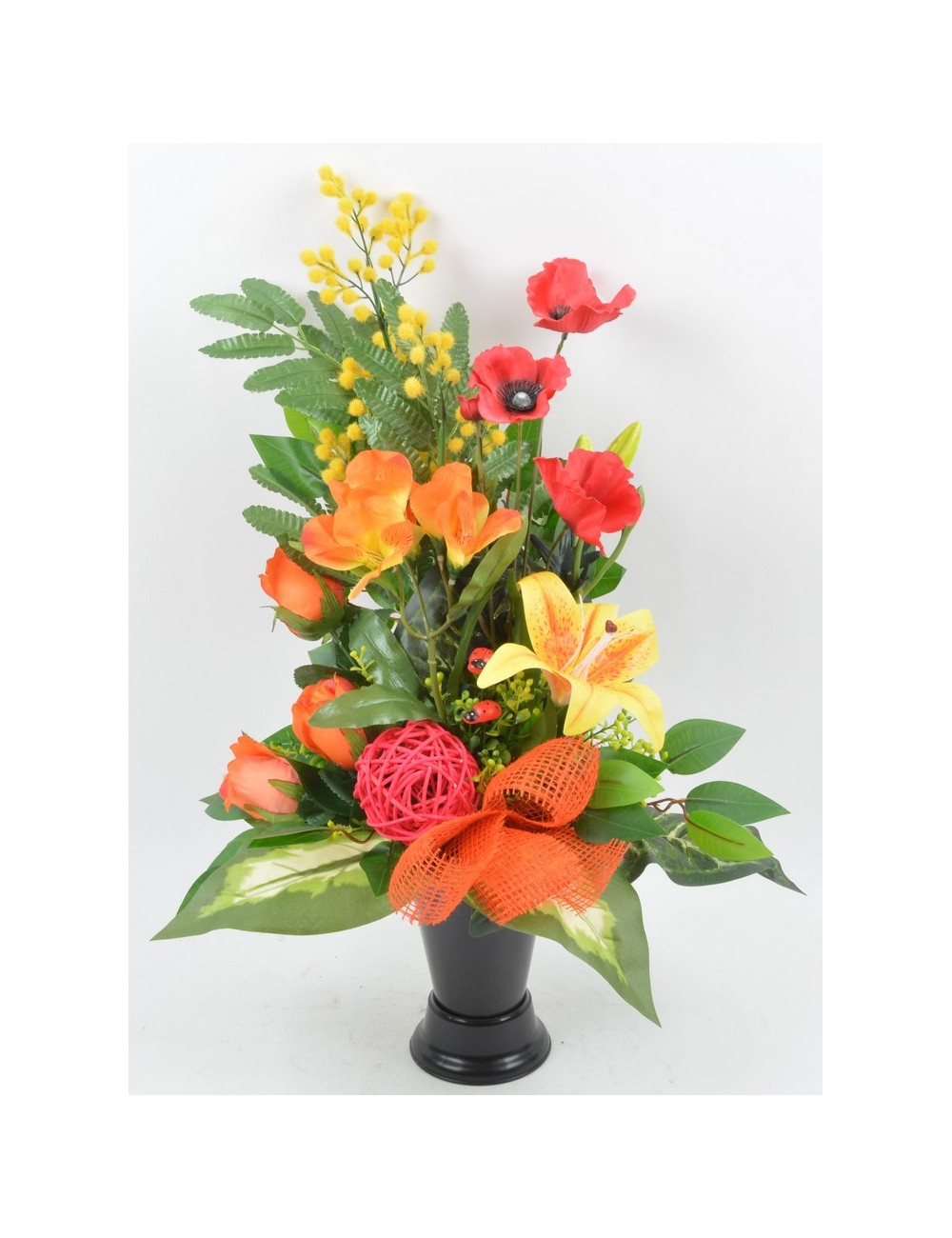 BOUQUET DE VASE LYS MIMOSA PAVOT ALSTROMERIA