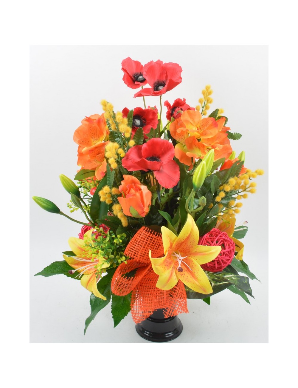BOUQUET DE VASE LYS MIMOSA PAVOT ALSTROMERIA