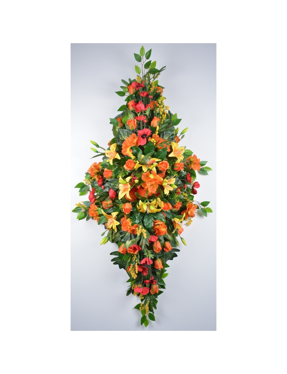 DESSUS DE CERCUEIL LYS MIMOSA PAVOT ALSTROMERIA