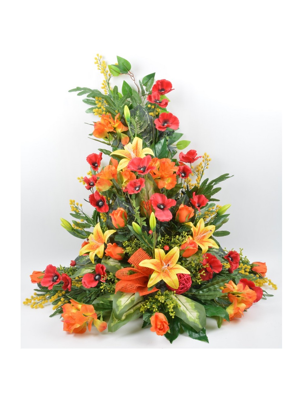 DEVANT DE TOMBE GM LYS MIMOSA PAVOT ALSTROMERIA