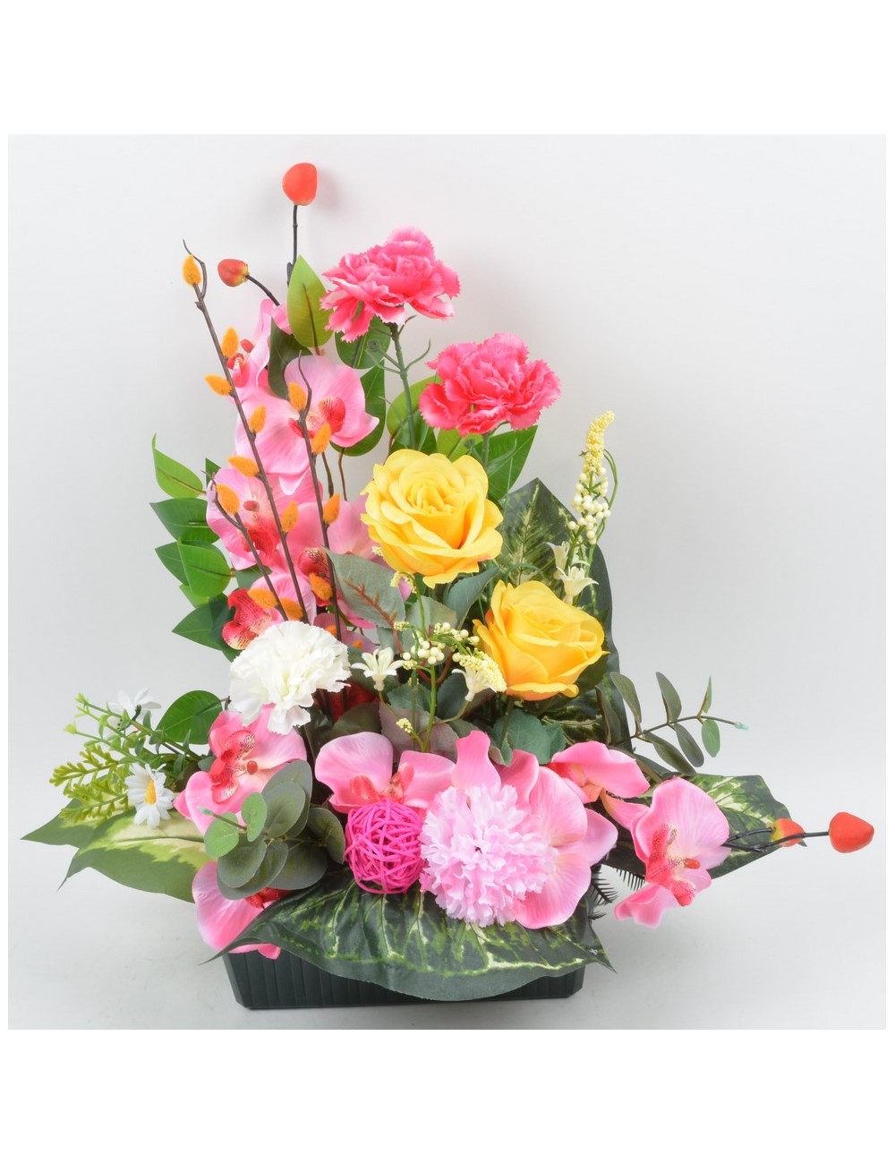 JARDINIERE 25 CM ORCHIDEE ROSE OEILLET