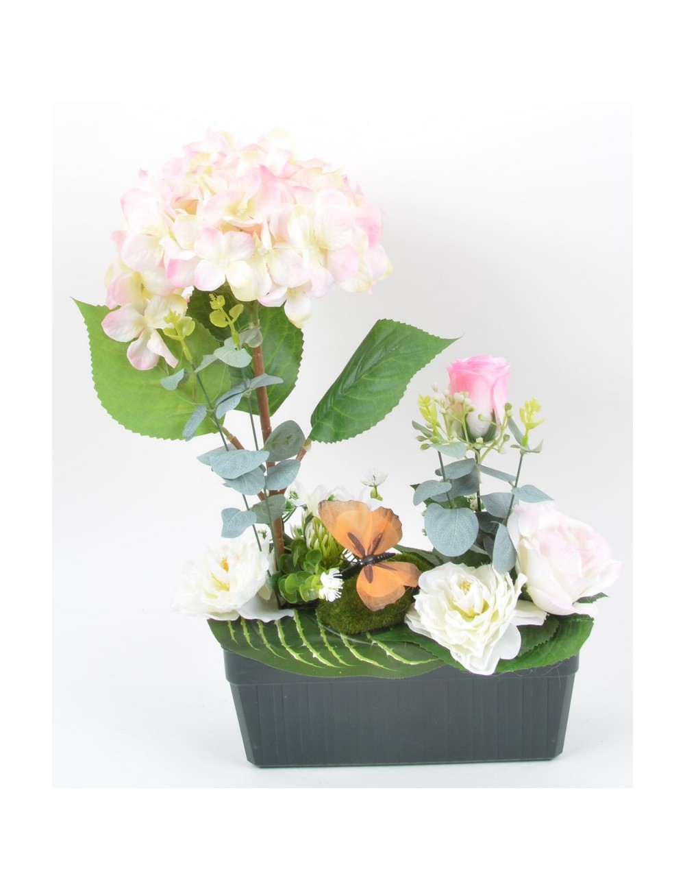 JARDINIERE 25 CM HORTENSIA ROSE RENONCULE ACHILLEA