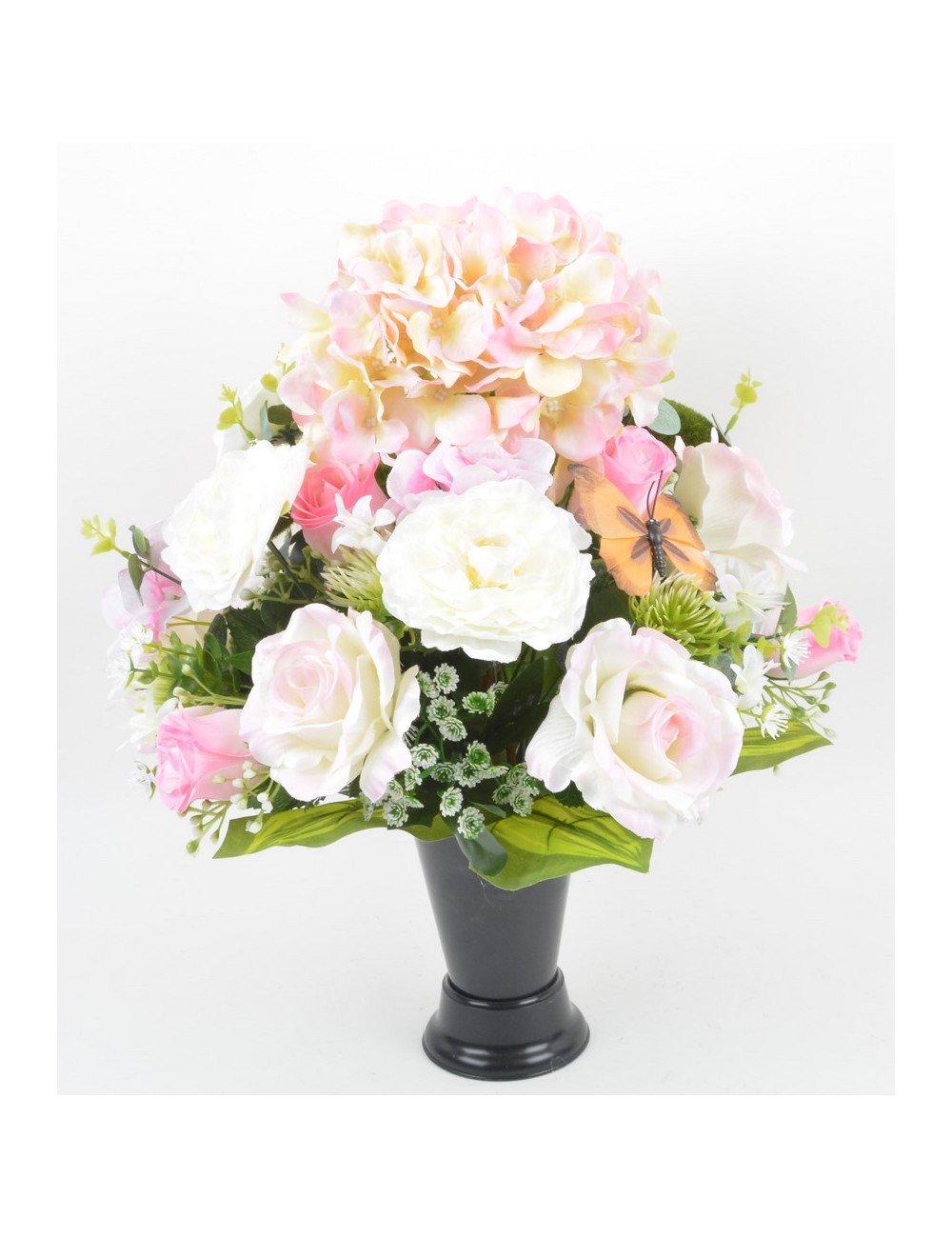 BOUQUET DE VASE HORTENSIA ROSE RENONCULE ACHILLEA