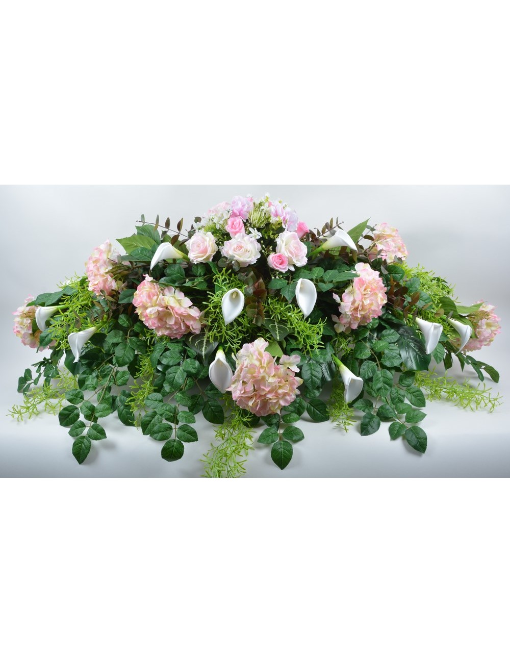 DESSUS DE CERCUEIL HORTENSIA ROSE ARUM ROSE