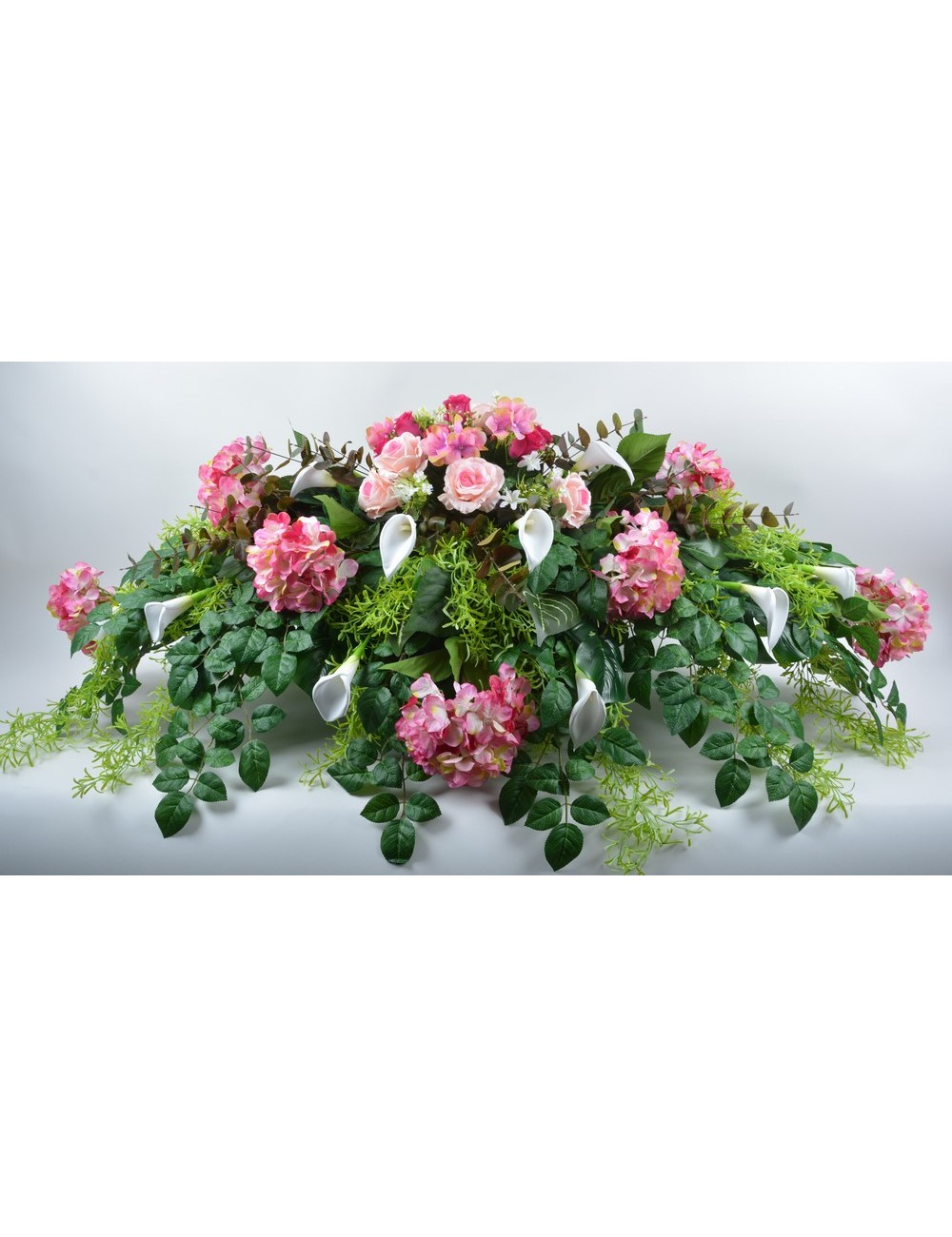DESSUS DE CERCUEIL HORTENSIA ROSE ARUM ROSE