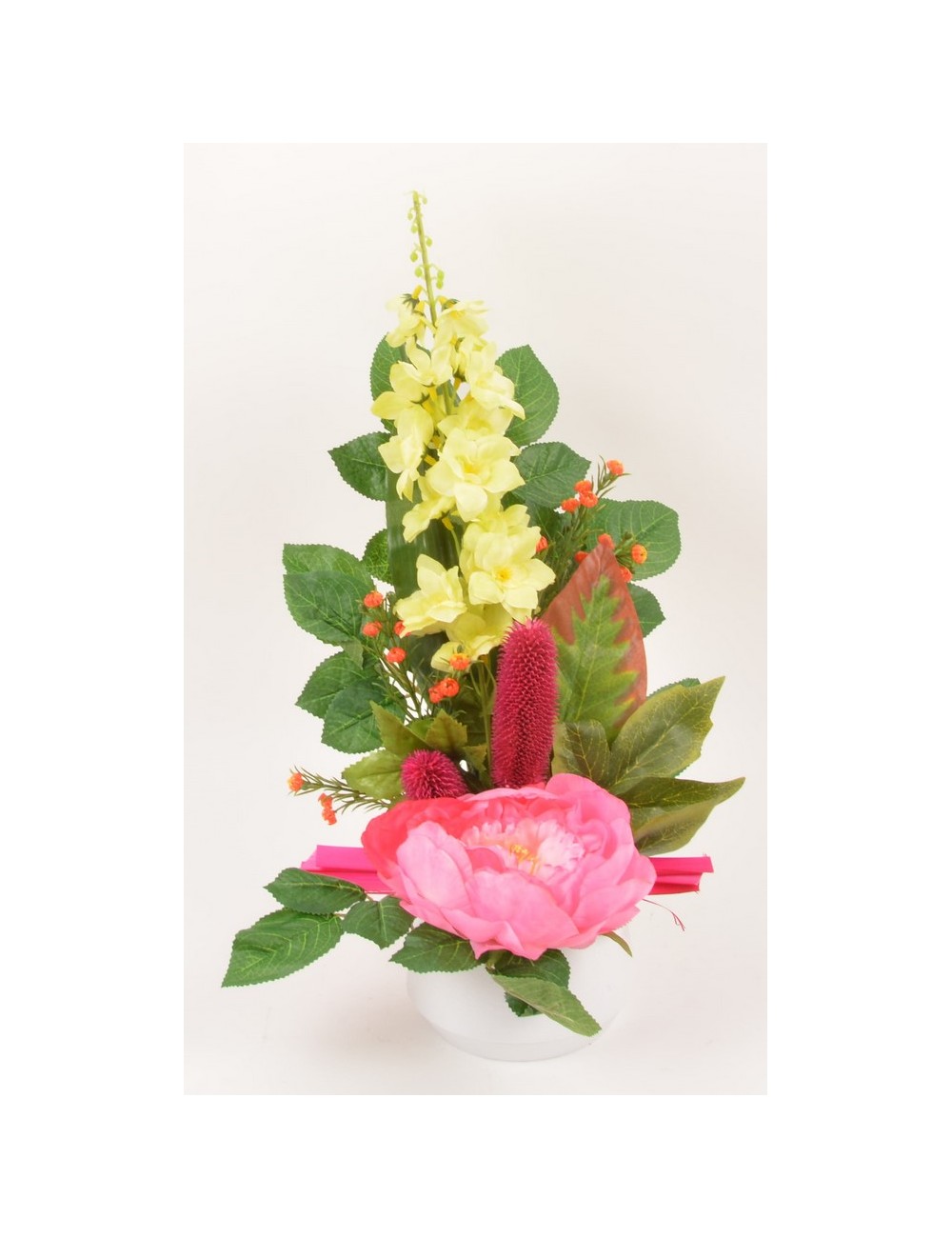 CONTENANT DECO PLASTIQUE DELPHINIUM ROSE PIVOINE