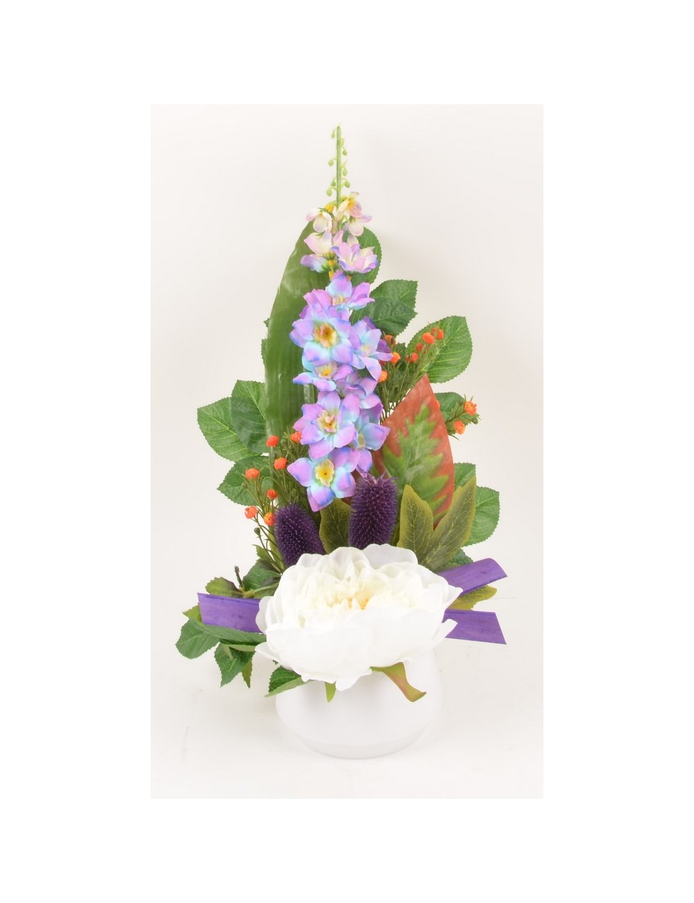 CONTENANT DECO PLASTIQUE DELPHINIUM ROSE PIVOINE