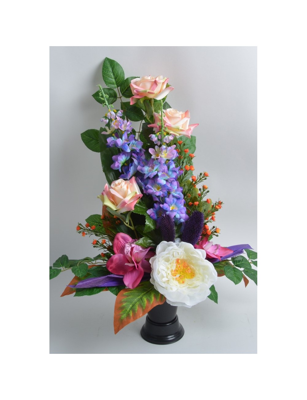 BOUQUET DE VASE DELPHINIUM ROSE PIVOINE
