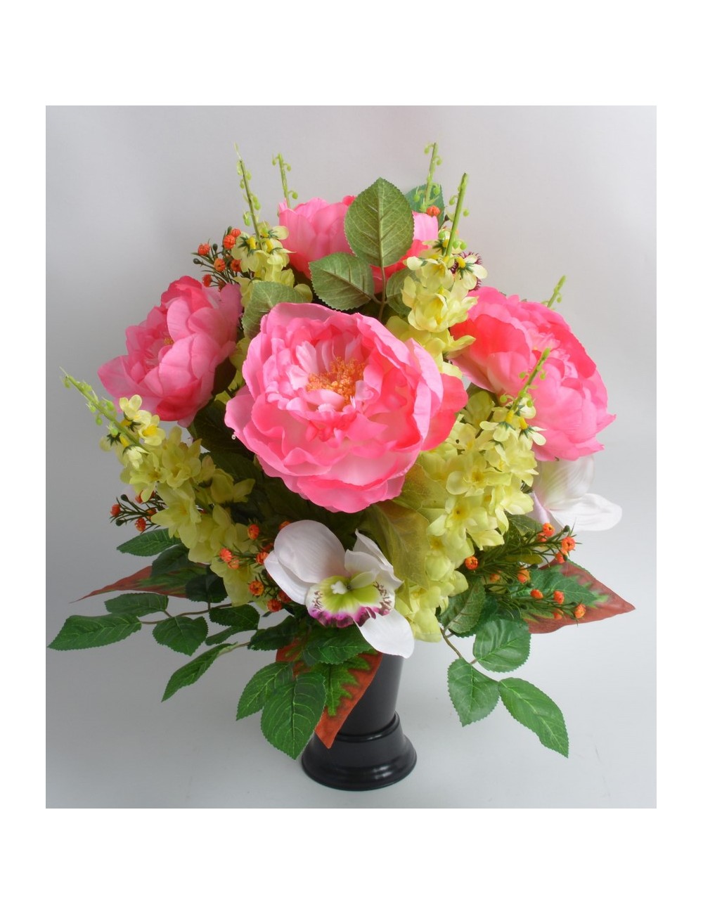 BOUQUET DE VASE DELPHINIUM ROSE PIVOINE