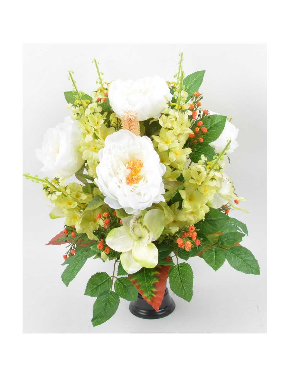 BOUQUET DE VASE DELPHINIUM ROSE PIVOINE
