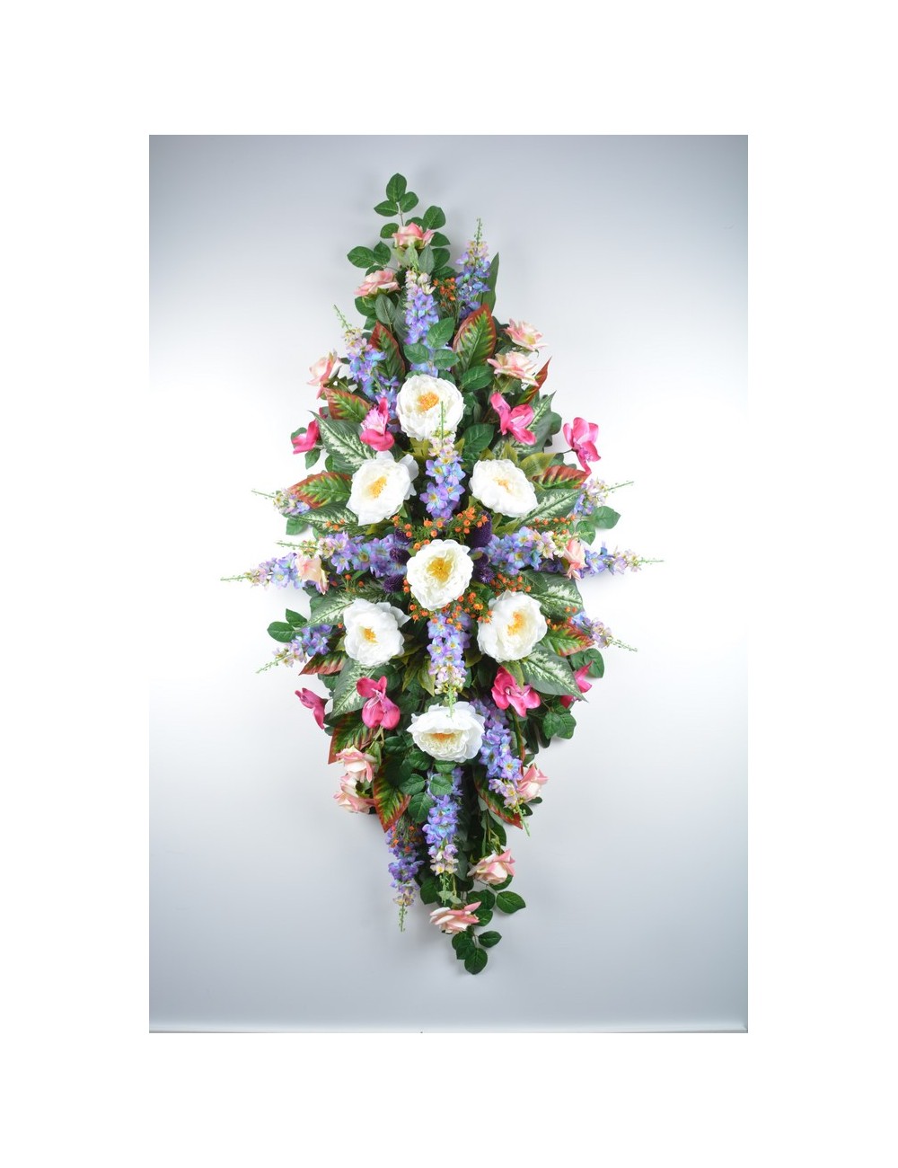 DESSUS DE CERCUEIL DELPHINIUM ROSE PIVOINE