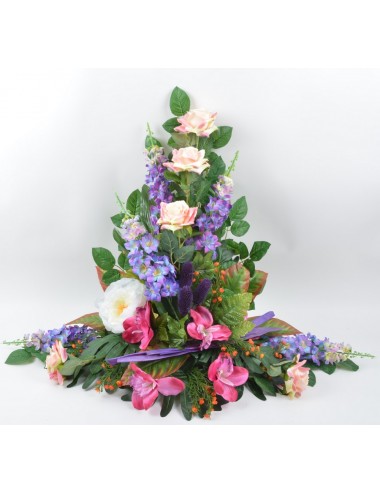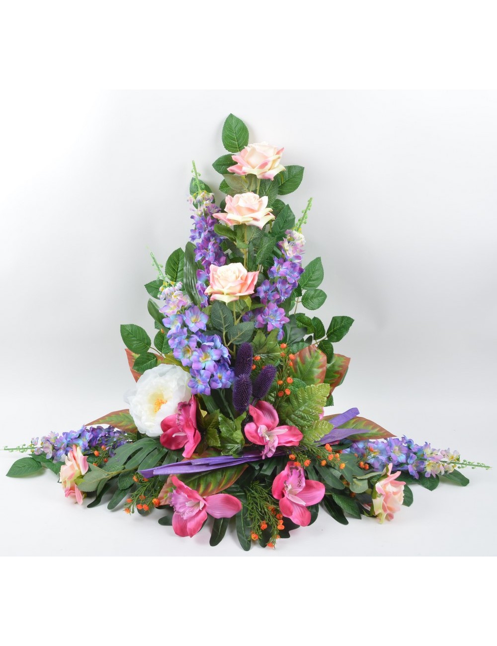 DEVANT DE TOMBE PM DELPHINIUM ROSE PIVOINE