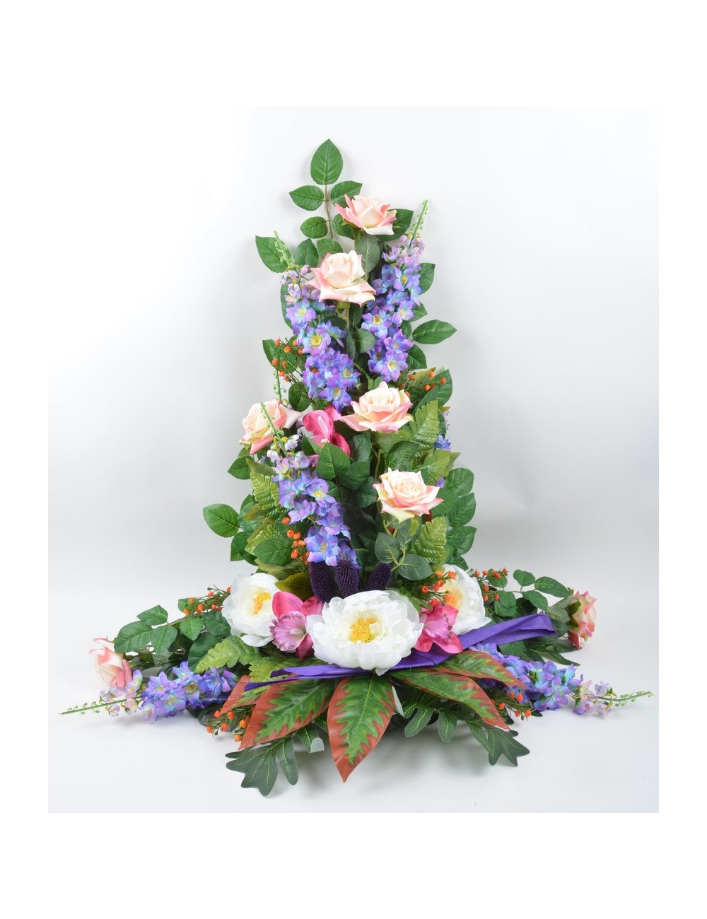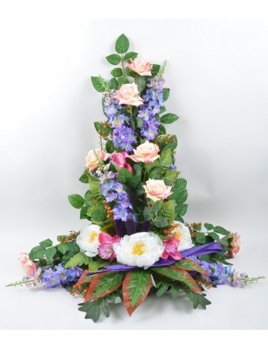 DEVANT DE TOMBE GM DELPHINIUM ROSE PIVOINE