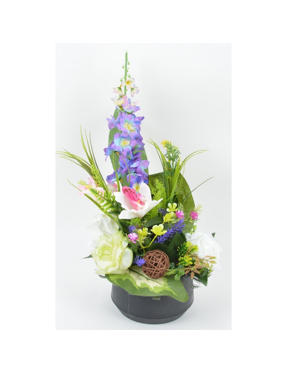 CONTENANT DECO PLASTIQUE DELPHINIUM ROSE ORCHIDEE