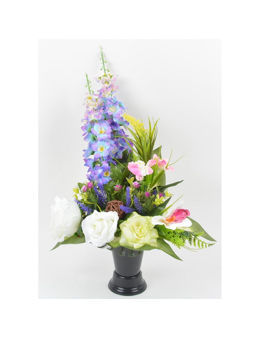 BOUQUET DE VASE DELPHINIUM ROSE ORCHIDEE
