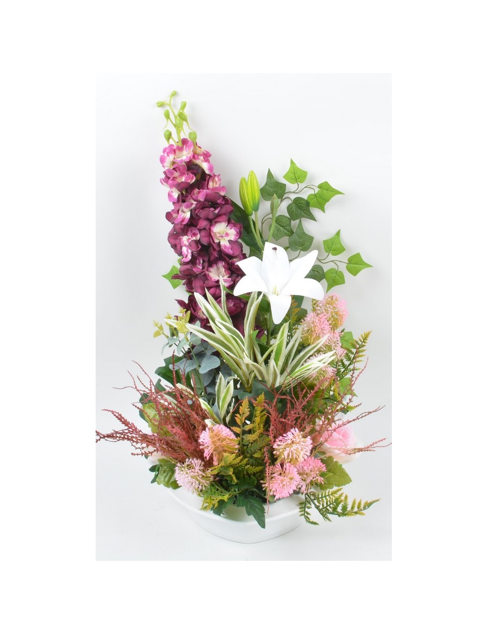 PLATEAU COEUR DELPHINIUM LYS DRACENA