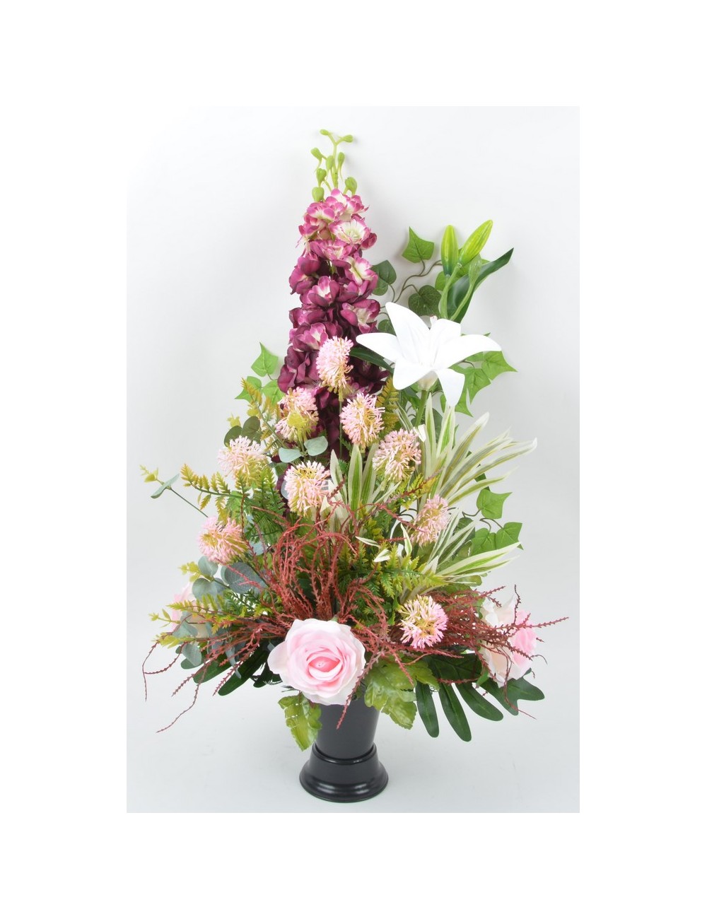 BOUQUET DE VASE DELPHINIUM LYS DRACENA