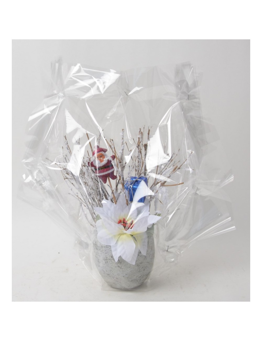 POT CIMENT MARBRE 10 CM POINCETIA BAMBOU FLOKE PERE NOEL
