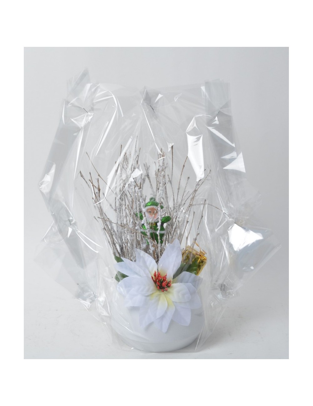 POT DECO PLASTIQUE BLANC POINCETIA BAMBOU FLOKEE PERE NOEL