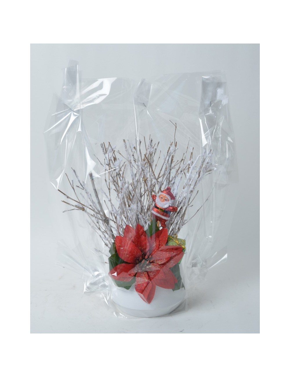 POT DECO PLASTIQUE BLANC POINCETIA BAMBOU FLOKEE PERE NOEL