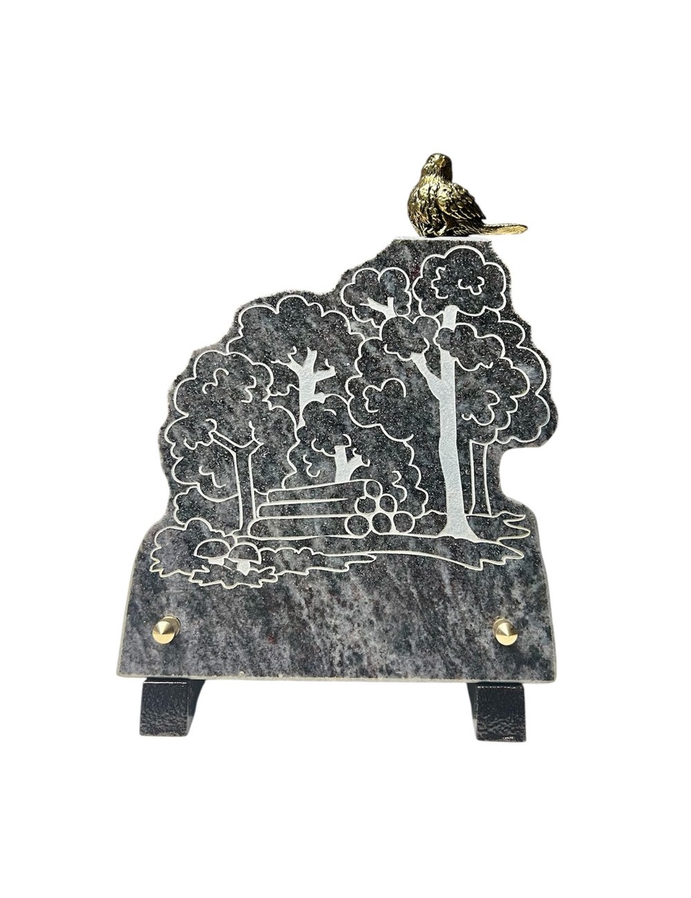 PLAQUE GRANIT 16 X 16 - 1 INTER - OISEAU LAITON ET SOUS BOIS