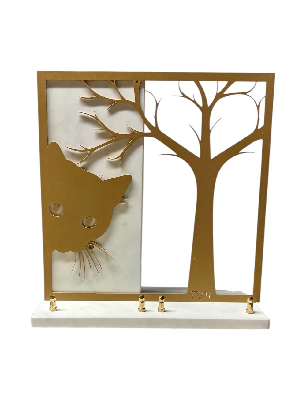 PLAQUE GRANIT 34 X 15 - 2 INTERS - CADRE CHAT ET ARBRE 33 CM